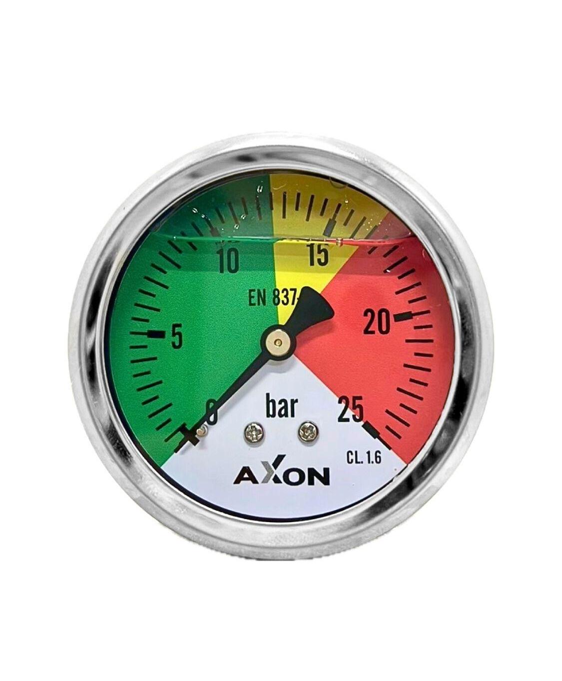 GLYCERIN FILLED PRESSURE GAUGE 2.5'' X 1.4'' BSP BACK MOUNT 0-60 BAR (3 COLOR DIAL)